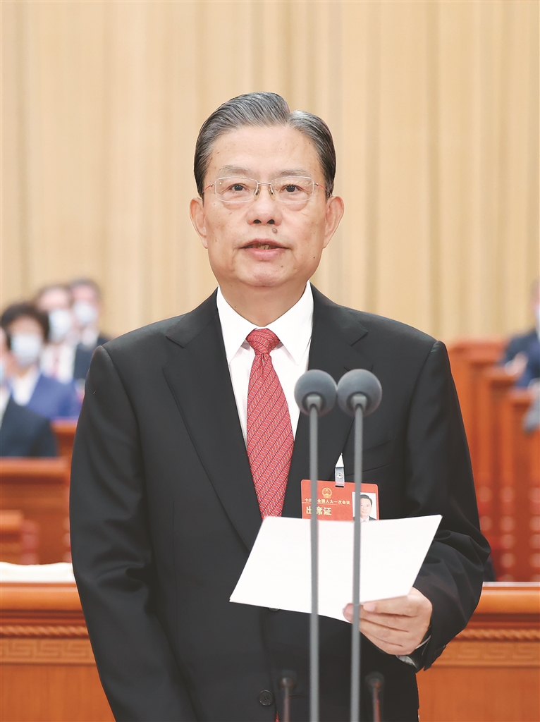 3月13日,第十四届全国人民代表大会第一次会议在北京人民大会堂举行闭幕会。大会执行主席、十四届全国人大常委会委员长赵乐际主持闭幕会并讲话。 新华社记者 黄敬文摄