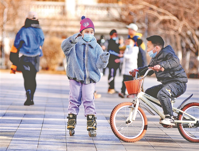 三月的哈尔滨气温回暖,19日,哈尔滨市最高气温升至13℃,明朗的阳光带着春天的希望与气息。市民们纷纷趁着好天气走出家门,带着孩子外出活动。