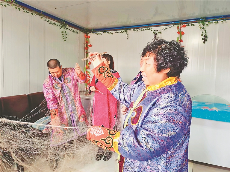 惊蛰忙织网,春分船验上。村民吴福胜和他的家人这几天围在一起,唱着《乌苏里船歌》,手中飞梭穿线,笑着聊着。