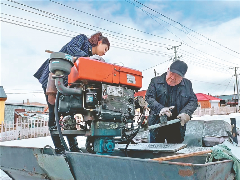 “要开江了,在开江之前,我们要做好准备,把新网装好,旧网也都补好,开始准备下江喽。”村民赵宝芹说。