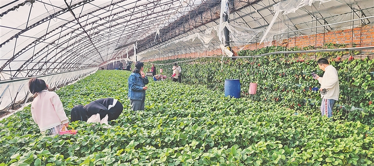 本报讯(梁思奇 记者姚建平)目前,讷河市城区周边采摘园草莓喜获丰收。在二克浅镇伟华绿色生态采摘园的大棚内,草莓个大饱满、色泽鲜红,游客们走进田间地头,感受草莓采摘的乐趣。