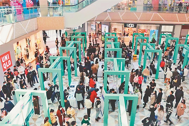 19日,由哈尔滨新区民政人社局、人力资源服务公司联合黑龙江省大学生就业创业指导中心组织的“2023哈尔滨新区重点企业专场招聘会——万象汇专场”在哈尔滨市松北区万象汇举行,110家企业参会,提供就业岗位3250个,现场参会人员5万余人,在线观看直播3.4万人,收到求职简历4513份。本报记者 孙海颖摄