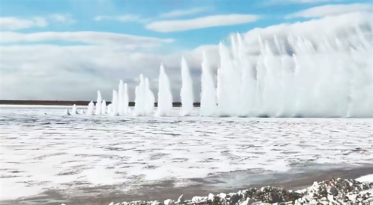 图为桦川县防指对松花江悦来渠首江段及城区东护岸江心岛北侧江段实施主动防凌汛爆破。李明广 于金迪 本报记者 李播摄