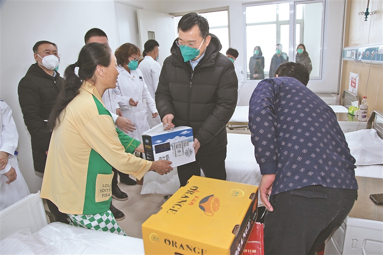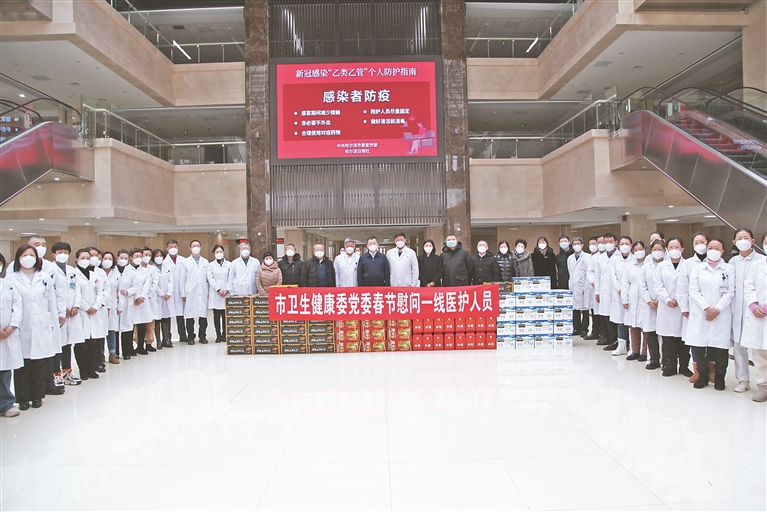 图① 哈市卫健委党委春节慰问一线医护人员。