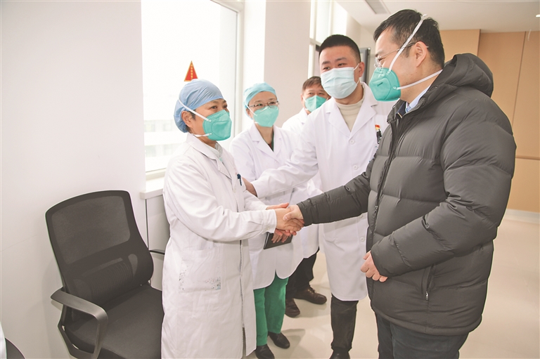 图② 哈市卫健委党委书记、主任栾枫(右一)春节慰问一线医护人员。