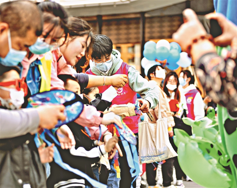 4月2日,是第十六个世界孤独症关注日。当日,哈尔滨市残联孤独症儿童康复中心的工作人员、大学生志愿者与数十名特殊儿童一起举行了“关爱孤独症儿童让爱来!让碍走!”活动。大学生志愿者与孩子们一起表演了节目,向人们展示了特殊儿童们的才艺。