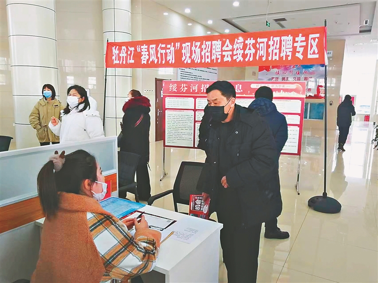 3月18日,26个部门联合主办了以“春风送真情,援助暖民心——就业在绥芬河”为主题的春风云聘会“省、市、县三级联动大型现场招聘会”,52家优质企业现场直招,提供就业岗位600余个。现场设置招聘区、综合服务区、项目展示区三大功能专区,为求职者和用人单位集中提供招聘、就业创业政策宣传、事业单位招聘引进人才政策解读、职业指导、劳动权益保障咨询、技能培训项目展示等全链条全方位服务,有效纾解了企业用工难题,帮扶劳动者尽早在绥就业创业。