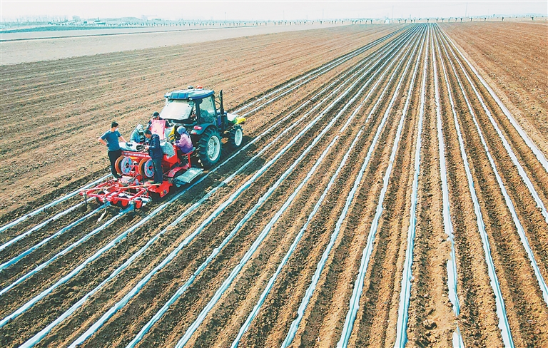据了解,今年春季气温高、回暖早,当前正是种植马铃薯的“黄金期”,宁安农场有限公司的种植户抢抓时令,使马铃薯播种比往年提早7天。马铃薯播种一体机集起垄、覆膜、播种、施肥等功能于一体,一系列流水线种植作业后,一条条“白丝带”在田间铺展,构成一幅如画的春播图景。