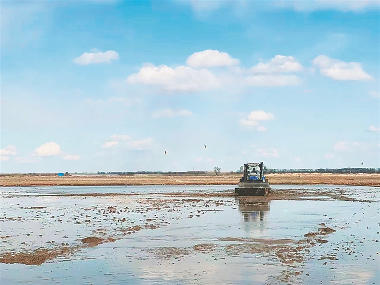 “我们今年采取倒计时工作法,每天保持上阵机车利用率,加快打浆整地进度。”江川农场农业发展部部长李智国介绍说,“江川耕地地力肥沃,耕层深厚,地下水位高,地表水充足,这是优势,却也给种植户整地带来了困扰,因此引进适合本地区作业的履带式拖拉机是今年江川高质高效完成水整地的重要因素。”。