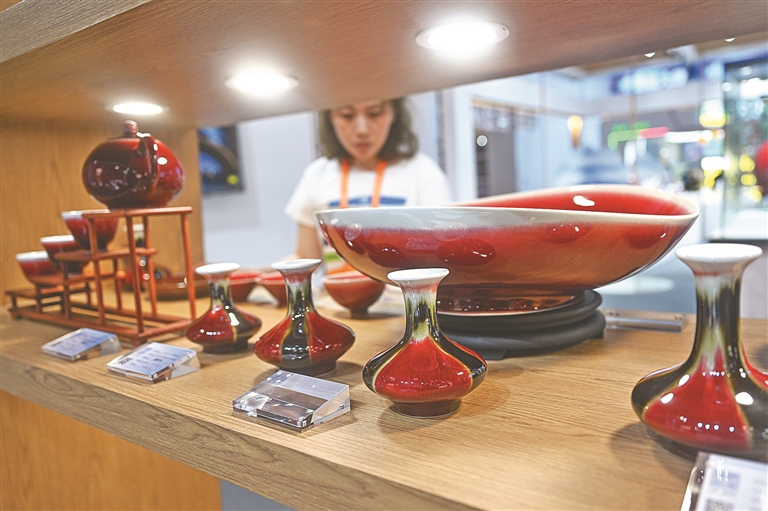 第三届中国国际消费品博览会展区拍摄的景德镇瓷器。新华社记者 蒲晓旭摄