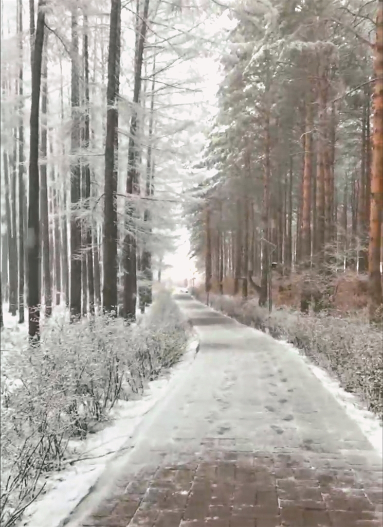 下图:下雪后静谧的树林。图片由逊克网友提供