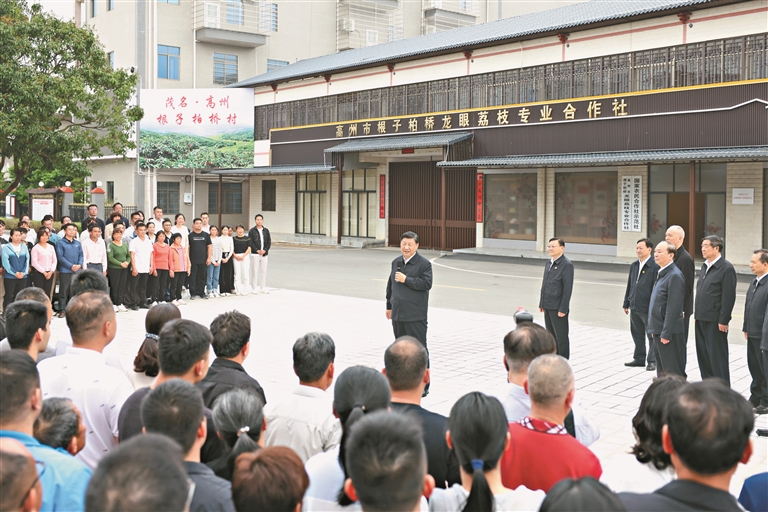 习近平11日来到茂名高州市根子镇柏桥村考察调研。柏桥村种植荔枝约6800亩,是荔枝生产专业村。习近平走进荔枝种植园,了解当地发展特色种植产业和文旅产业等情况,并同现场技术人员亲切交流。随后,习近平来到柏桥龙眼荔枝专业合作社,听取合作社运营和推进乡村振兴等情况介绍。