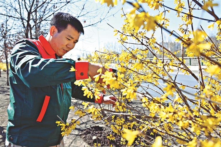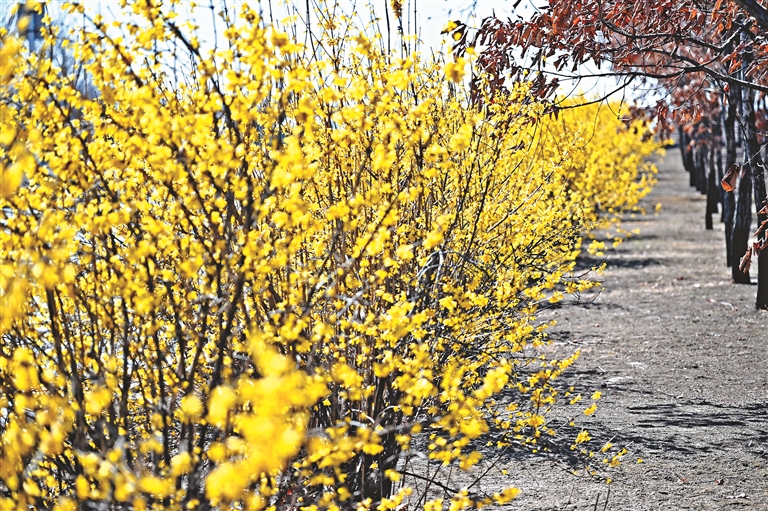 明媚的春季,预示着生生不息的新希望。为进一步美化城区环境,打造城区街路特色景观,前不久,香坊区园林管理局在辖区三环路融创城领域小区至华南街路段的城市绿地里新植了1800株东北连翘;眼下,在三合路道路中间的分车绿化带里,近1400株东北连翘开得十分艳丽,让人欢喜、心动。