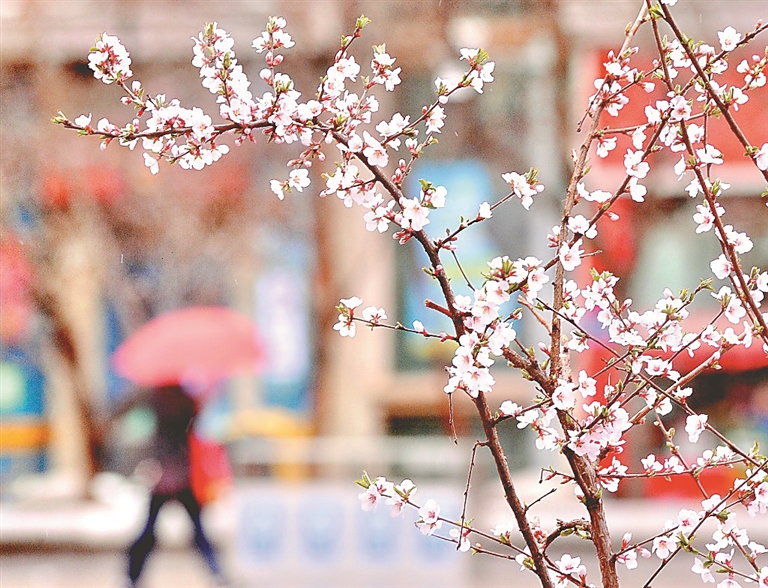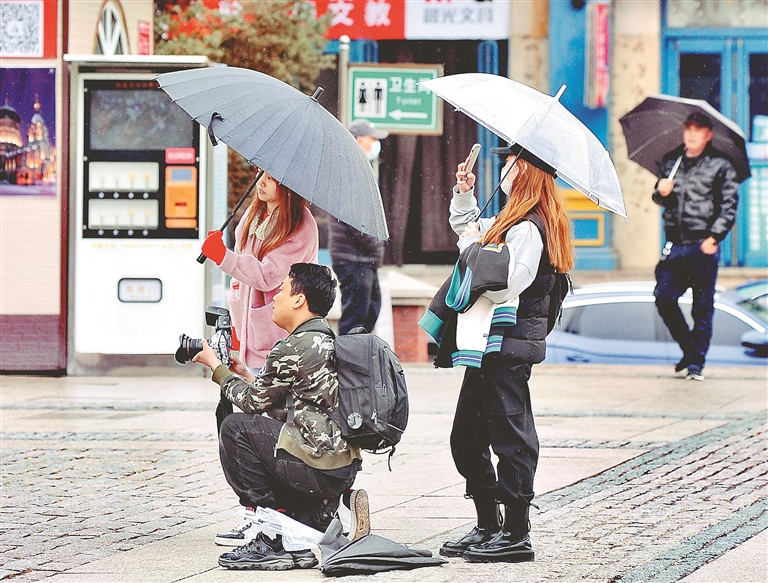 18日上午,哈尔滨喜迎春雨。雨水洗净了整座城市,空气变得异常清新。雨中,人们撑伞而行,五颜六色的雨伞汇聚成街头一道美丽的风景。树木、小草在雨水的浇灌、滋润下,更显生机与活力。