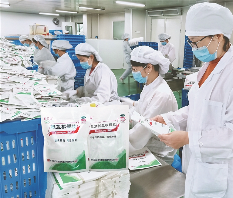 在开拓市场方面,2020年初,广药集团在澳门设立国际总部,广药集团与钟南山院士团队及澳门科技大学共同推动白云山板蓝根的最新科研成果在澳门产业化。目前,复方板蓝根颗粒已于2022年1月在澳门取得《进口传统药物之预先许可》,进入澳门市场。以产业为纽带,广药集团将部署在各个地区的板蓝根药材资源与粤港澳大湾区的国际化资源连接在一起,形成国内国际双循环的良性互动。