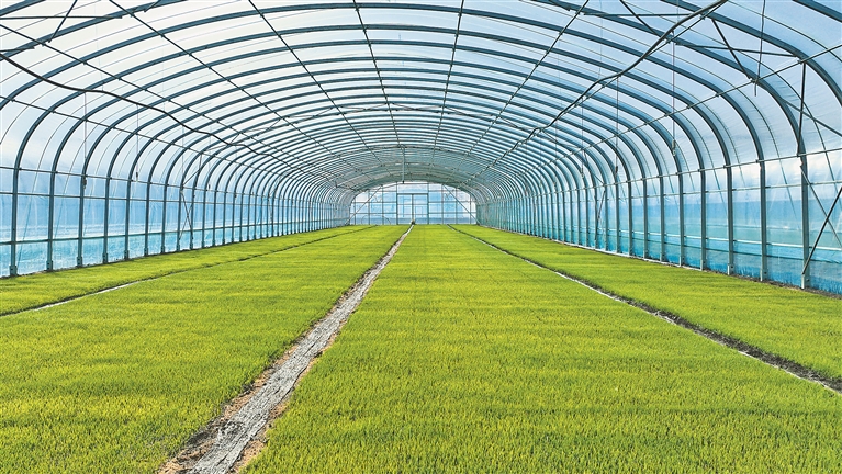嫩绿的水稻芽种幼苗破土而出,带着晶莹剔透的水珠,在阳光的沐浴下显得格外娇嫩……近日,在北大荒集团查哈阳农场有限公司集中育秧大棚内,查哈阳农场金光管理区种植户杜忠诚正在大棚内认真地查看自家经过智能双氧催芽的苗床温度和湿度,小心翼翼地用手指拨开苗床的土壤。