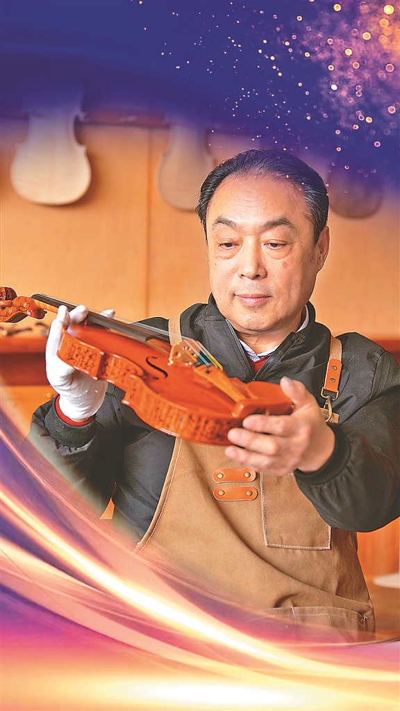 30多年来,他一直执着于亲自带队参与工艺改良、技术改造和研发,综合国内外数十家同类产品的特点,不断精进创新,研制出了一系列新型小提琴。眼下,他又投入到雕花四重奏的提琴制作研发中来,让世界听到中国制造的美妙乐音。