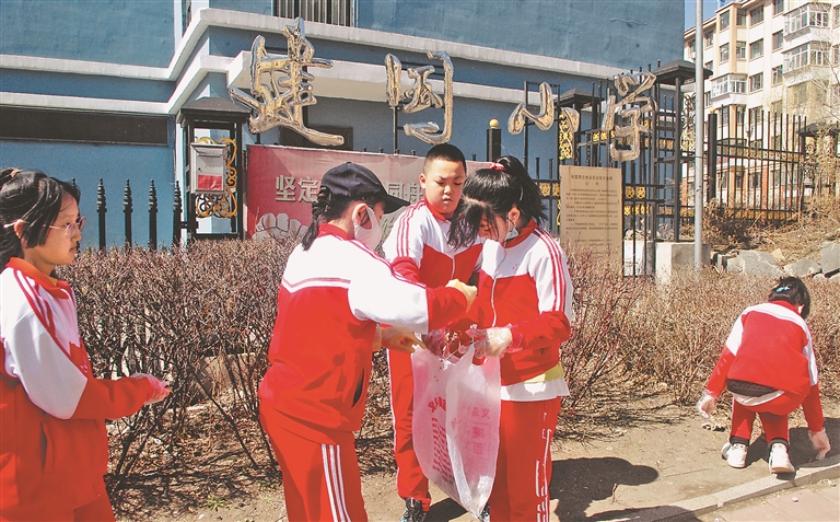 4月20日,双鸭山市尖山区在区属学校同步启动“小手拉大手 共创文明城”六个一主题实践活动。