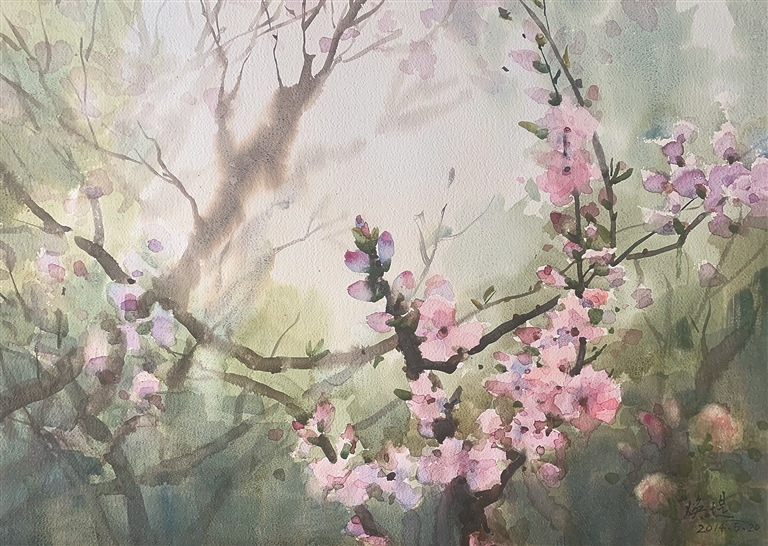 王焕堤 《杏花迎春》 纸本水彩 54×74cm