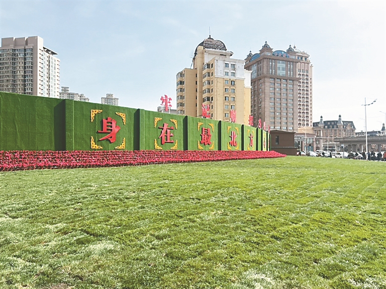 平整的草地,鲜艳的花朵,醒目的标语。近日,在哈尔滨市道里区友谊路与河润街交口处,一座景观墙惊艳亮相。据了解,此处原为砖混结构围挡墙,为了美化环境,助力全国文明城市创建,道里区园林部门将其进行改造。全新打造的景观墙高4.5米、长100米,景观墙周围布满近1500平方米的绿地和3300盆花卉。优美的景观墙吸引很多市民驻足,拍照留影。