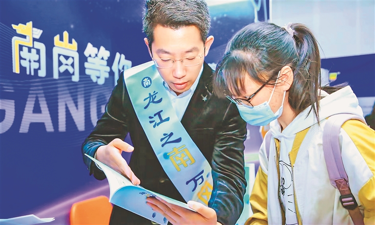 哈尔滨工业大学应届毕业生史哲丞家在江西,四年大学生活让他爱上了哈尔滨,“今天南岗区拿出的岗位和招引政策都很吸引我,能找到专业对口、薪资待遇都不错的岗位我很高兴。”