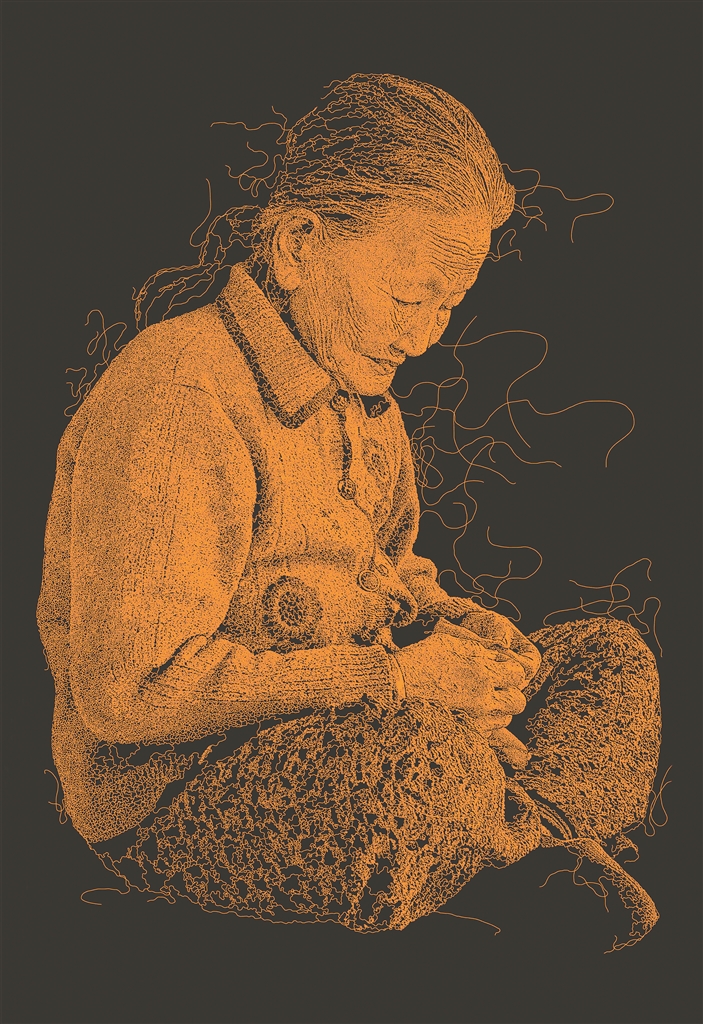 线条在中西方绘画中都有着重要的位置,郑振铎在《中国古代木刻画史略》中说“我国的绘画中以线条为主,故尤易重现于木刻中”,西方现代艺术认为线是抽象艺术的基础。在《生命之殇》《建设者》《谁言寸草心》《鹤发童颜》《厚土耘生》中,谢崇尝试着使用一种陌生化的“线”来进行形式语言的探索。