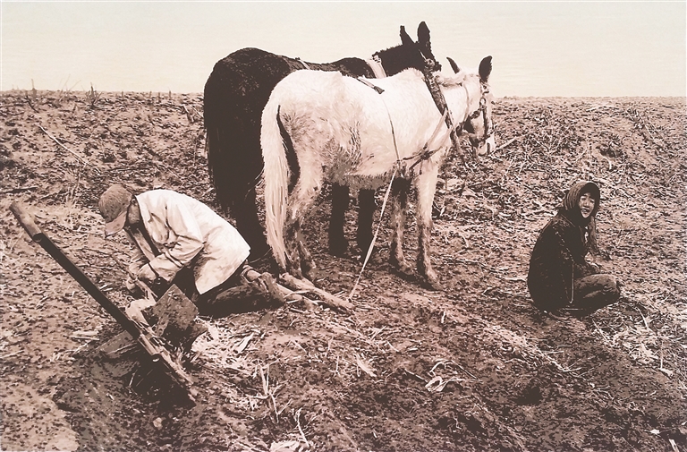 随着对生活认知体悟的加深,谢崇渐渐摆脱对于前辈画家艺术语汇的挪用与模仿,他饱含深情使手中的刻刀成为心灵的发光体,照耀着黑土地上平凡的劳动者。《春耕》《大地归春》等作品以现实主义的手法生动再现了北方农民的勤劳质朴。