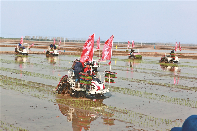 插秧机协同作业。刘隆航 厉远 本报记者 刘畅摄
