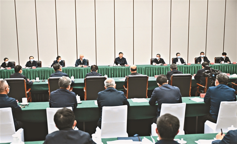 5月10日,中共中央总书记、国家主席、中央军委主席习近平在河北省雄安新区考察,并主持召开高标准高质量推进雄安新区建设座谈会。这是10日下午,习近平主持召开高标准高质量推进雄安新区建设座谈会并发表重要讲话。新华社记者 燕雁摄