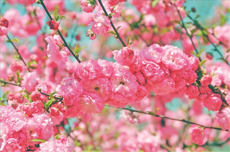 又名小桃红,属蔷薇科桃属灌木,高2~3米,枝紫褐色,叶宽椭圆形至倒卵形,花单瓣至重瓣,粉红色或紫红色,花瓣近圆形或宽倒卵形,花期5月中旬。