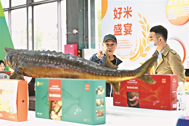 在展位里,产自龙江的优质大米、大豆、杂粮、高端肉、冷水鱼、乳品……16家“黑土优品”企业的122款产品吸引众人停下脚步。