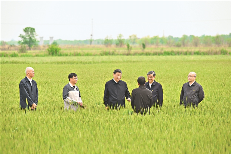 11日上午,习近平来到沧州市,考察了黄骅市旧城镇仙庄片区旱碱地麦田,了解盐碱地整治、旱碱麦种植推广及产业化情况。习近平走进麦田,仔细察看小麦长势,并向正在田里劳作的种植户、农技专家询问旱碱麦产量、价格、品质、收益等。习近平指出,开展盐碱地综合利用,是一个战略问题,必须摆上重要位置。要立足我国盐碱地多、开发潜力大的实际,发挥科技创新的关键作用,加大盐碱地改造提升力度,加强适宜盐碱地作物品种开发推广,有效拓展适宜作物播种面积,积极发展深加工,做好盐碱地特色农业这篇大文章。