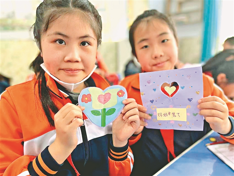 一道美食、一次家务,小小的动作,孩子们表达着对妈妈的感恩之情。曹华君 本报记者 王志强摄