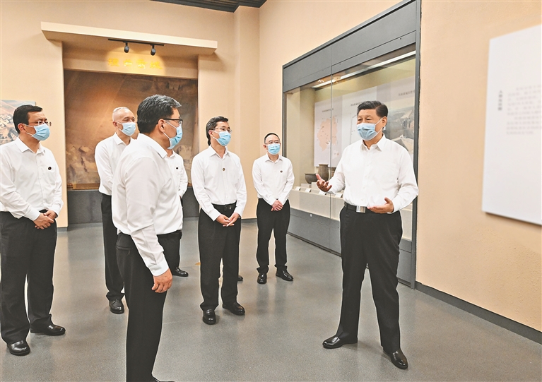 习近平心系黄河流域生态和文物保护工作。5月16日下午,在前往陕西途中,习近平走下列车,在山西省委书记蓝佛安、省长金湘军陪同下,先后考察了运城博物馆和运城盐湖。运城历史悠久,文脉厚重,因“盐运之城”得名。在博物馆,习近平参观“华夏寻根”“馆藏珍品”“盬盐春秋”等展陈,详细了解运城有关人类起源和中华文明早期历史发展等,并听取运城盐湖的形成发展和历史沿革介绍。习近平强调,博物馆有很多宝贵文物甚至“国宝”,它们实证了我国百万年的人类史、一万年的文化史、五千多年的文明史,要深入实施中华文明探源工程,把中国文明历史研究引向深入。要认真贯彻落实党中央关于坚持保护第一、加强管理、挖掘价值、有效利用、让文物活起来的工作要求,全面提升文物保护利用和文化遗产保护传承水平。