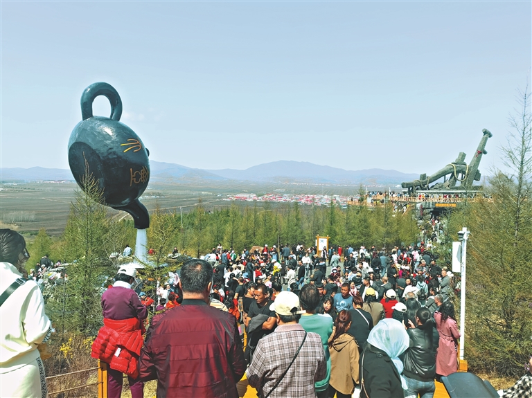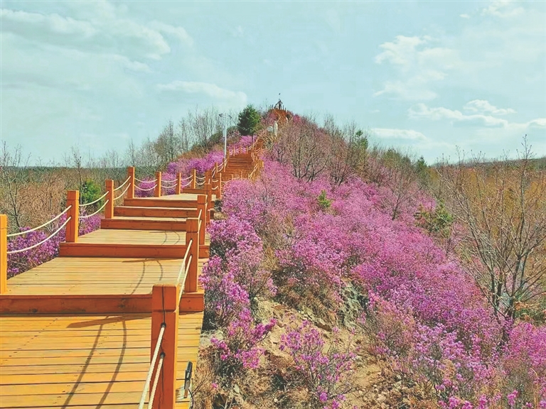 最美人间五月天,岭上开遍映山红。在宝清县小城子镇的彩云岭景区,映山红如期绽放,一丛丛,一束束,宛如紫色的精灵跃然山间,引得游客纷纷前来打卡拍照。彩云岭文化旅游民俗景区高峰期日均接待游客逾4万人次,已成为双鸭山市及其周边最受欢迎的旅游景区之一。