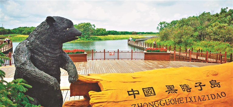 走在黑瞎子岛湿地公园木栈道上,放眼远眺,山水树木浑然一体,天在湖中蓝,云在水中漂,空气中弥漫着花草的清香,耳边是清脆的鸟鸣,碧草苍苍,游人如在画中。