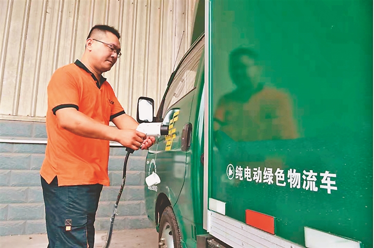 纯电动绿色物流车。本报记者 邢汉夫摄