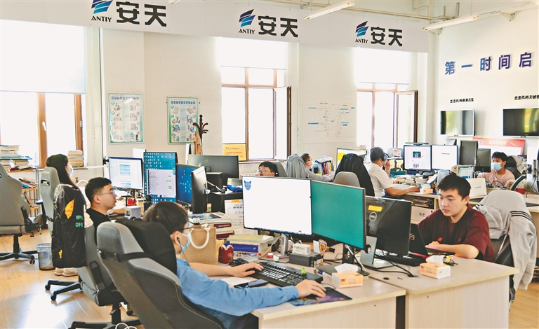 双屏电脑、竖屏电脑、笔记本电脑,每个工位上都至少摆放着两台电脑,这是安天科技集团股份有限公司(简称安天)办公区的标配。