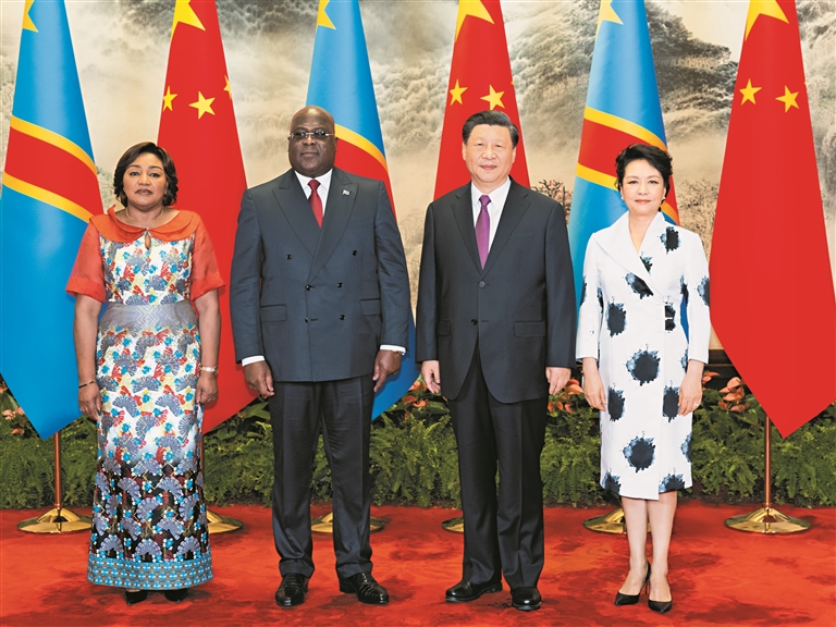 习近平指出,中刚两国在争取民族解放运动和反对殖民侵略的历史进程中建立了深厚传统友谊,是拥有广泛共同语言、并肩同行的战略伙伴。近年来,双方各领域合作成果丰硕,中国连续多年成为刚果(金)最大贸易伙伴和最大外资来源国,双方已经结成紧密的利益共同体和命运共同体。中国式现代化的成功经验表明,发展中国家有权利也有能力探索符合本国国情的现代化道路。中方愿同刚果(金)加强发展战略对接,在发展振兴的道路上相互支持、共谋合作、共促发展、共同进步。相信中国高质量发展将为刚果(金)提供更多合作机遇和更广阔市场,推动双边关系得到更大发展。
