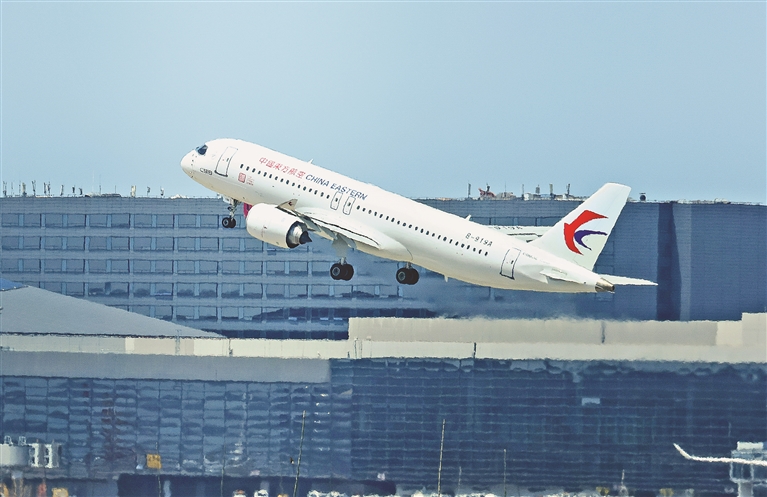 ①C919从上海虹桥国际机场起飞。