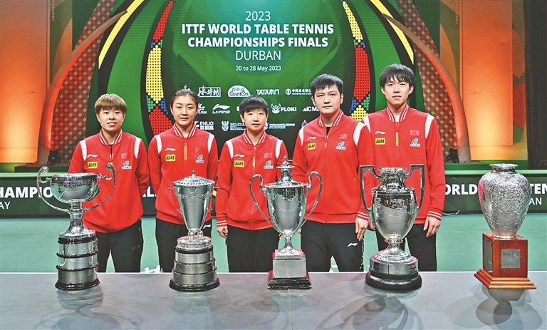 当日,在南非德班进行的2023年世界乒乓球锦标赛闭幕,中国队包揽五冠。