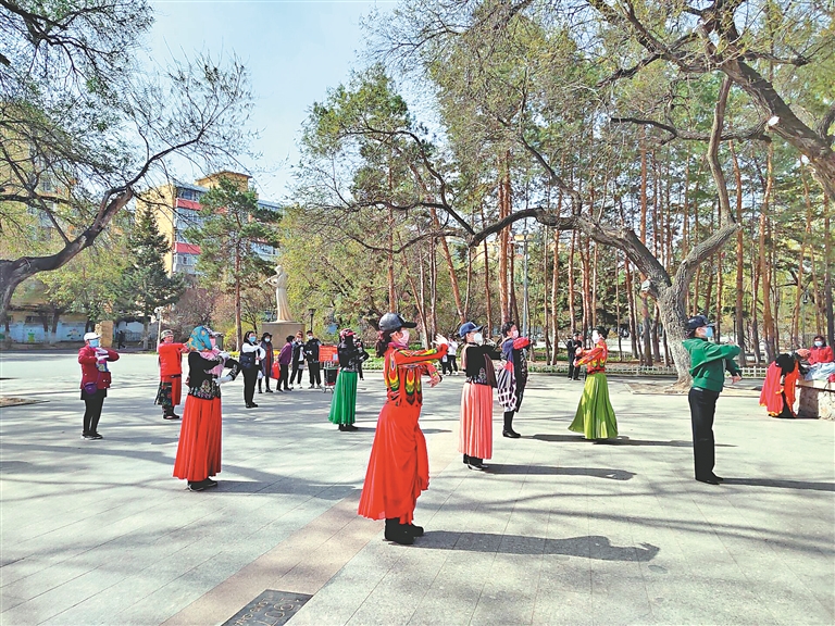 走进公园,迎面花团锦簇的雕塑是一位仪态万千的女子雕像,雕像女子正在动情地拉着小提琴,“春之声”款款流淌的旋律泛绿了柳枝,娇艳了花朵,呢喃了燕子……伴着优美的乐曲,公园里载歌载舞的人们用自己的方式享受着幸福生活,跳民族舞蹈的,打太极拳的,唱歌的……随处可见,我看看这,瞧瞧那,心也随之欢愉起来。