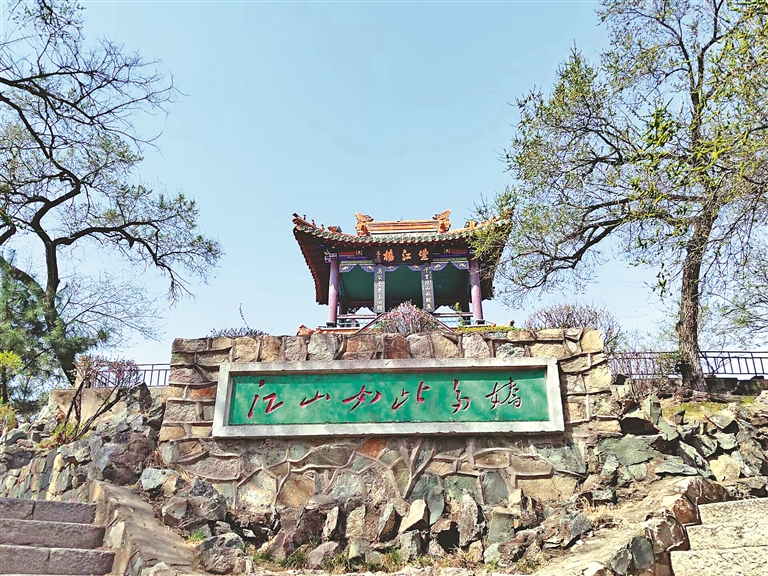 沐浴着初夏的浅阳,携“天女散花”的雅韵,一座雕梁画栋的楼阁——“望江楼”矗立眼前。
