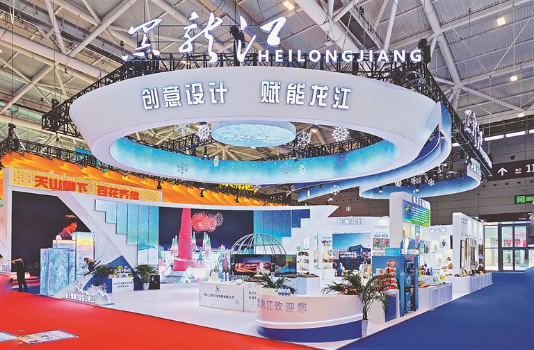 位于文化产业综合馆A馆10号馆的黑龙江展区,面积达308平方米。展区以“突出特色、传承底蕴、创意创新”为原则,将整个展区划分为“魅力冰雪、甄选农品、数字空间、创意工业、时尚文创、传承工美”6个分展区,精心选取具有黑龙江工业特质、地域特色、冰雪特景、科技特征、时代特点的创意设计与文化产业标杆典范产品及成果,全面展示我省文化改革发展成就及潜力优势。