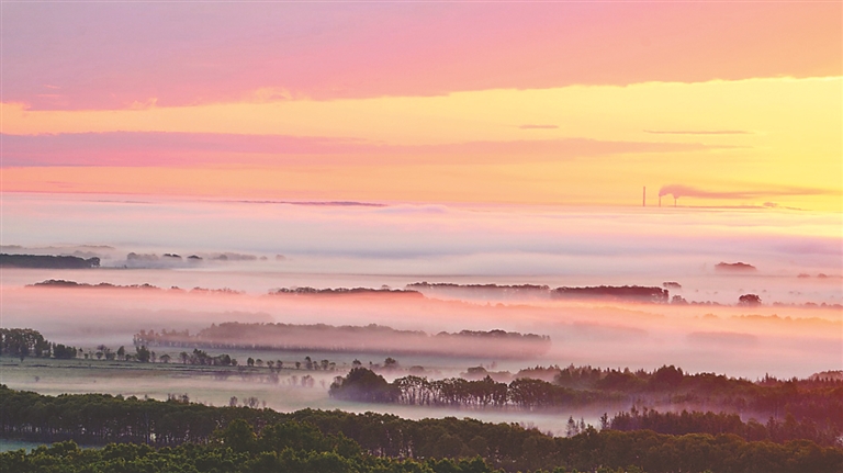 珍宝岛湿地国家级自然保护区位于黑龙江省虎林市东部,环境优美,景色宜人。登上山顶,可见远方景色朦胧,云团如海浪一样翻滚,气势浩瀚,一派人间仙境。