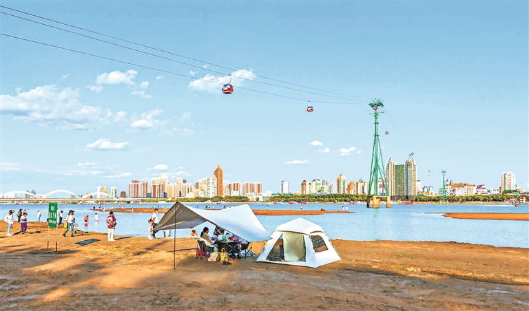 ①在松花江北岸搭起帐篷,尽享夏日清凉。