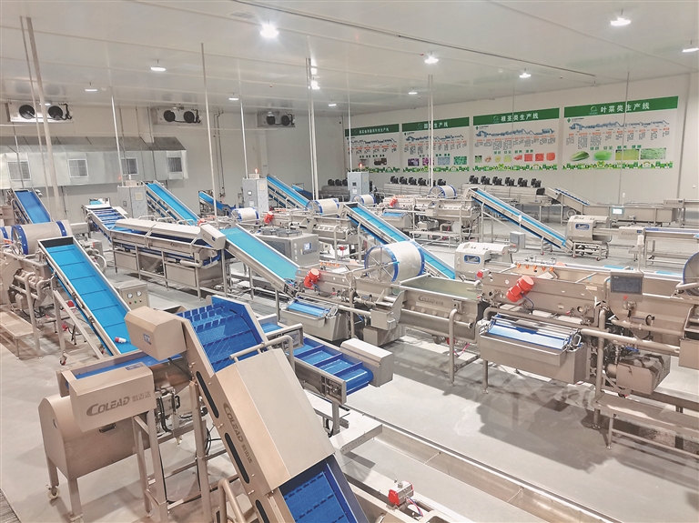 北大荒集团哈尔滨有限公司资源资产管理部副部长崔红介绍,公司积极推进蔬菜产业集群项目,建设北大荒蔬菜配送中心货物传输线工程,提高了蔬菜加工原料库和成品库的内部物流运转能力,通过松花江农场冷链物流节点库建设项目健全了蔬菜原料产地仓储冷链物流体系。同时,公司还倾力打造了北大荒营销平台,建立直播共享基地,发展线上线下双轮驱动营销模式。记者在营销平台的直播基地看到,现场有13个直播间,直播设备齐全并全部投入使用,在新媒体平台形成品牌销售矩阵。