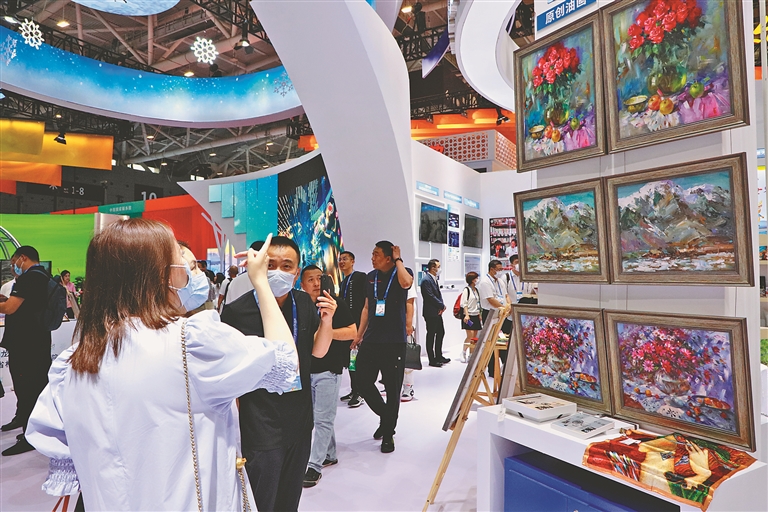 记者在黑龙江展区看到,黑河市参展企业紧扣文化创意设计产业发展,突出独特区位优势、良好生态环境、高品质绿色食品以及异域的风情文化。