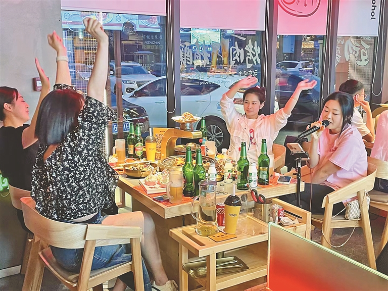 靠窗的一桌,四个女生喝美了、也唱嗨了,连着点了好几首歌,“我今天给姐妹儿过生日,特意来杨小佳搞气氛,倍儿有面儿。”在这里,肉肉和食客默契十足,呈现出一种双向奔赴的快乐。