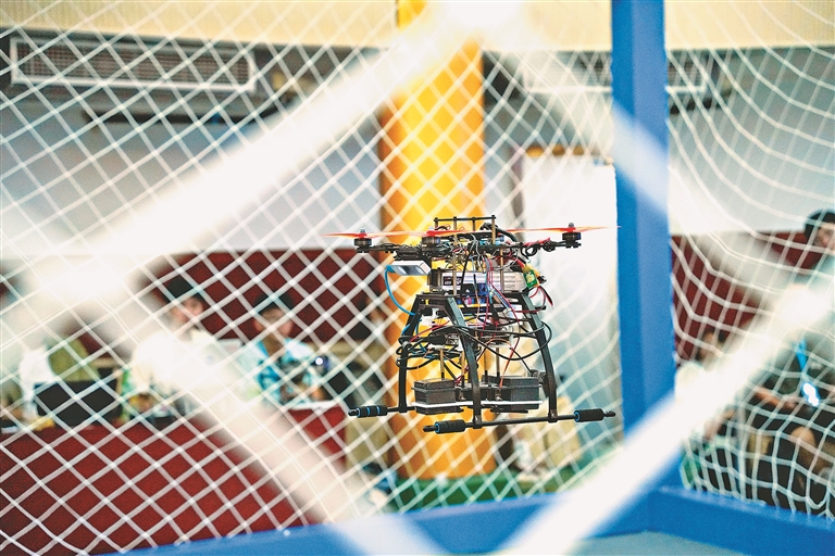 这是6月13日在机器人任务挑战赛中拍摄的微型无人机。